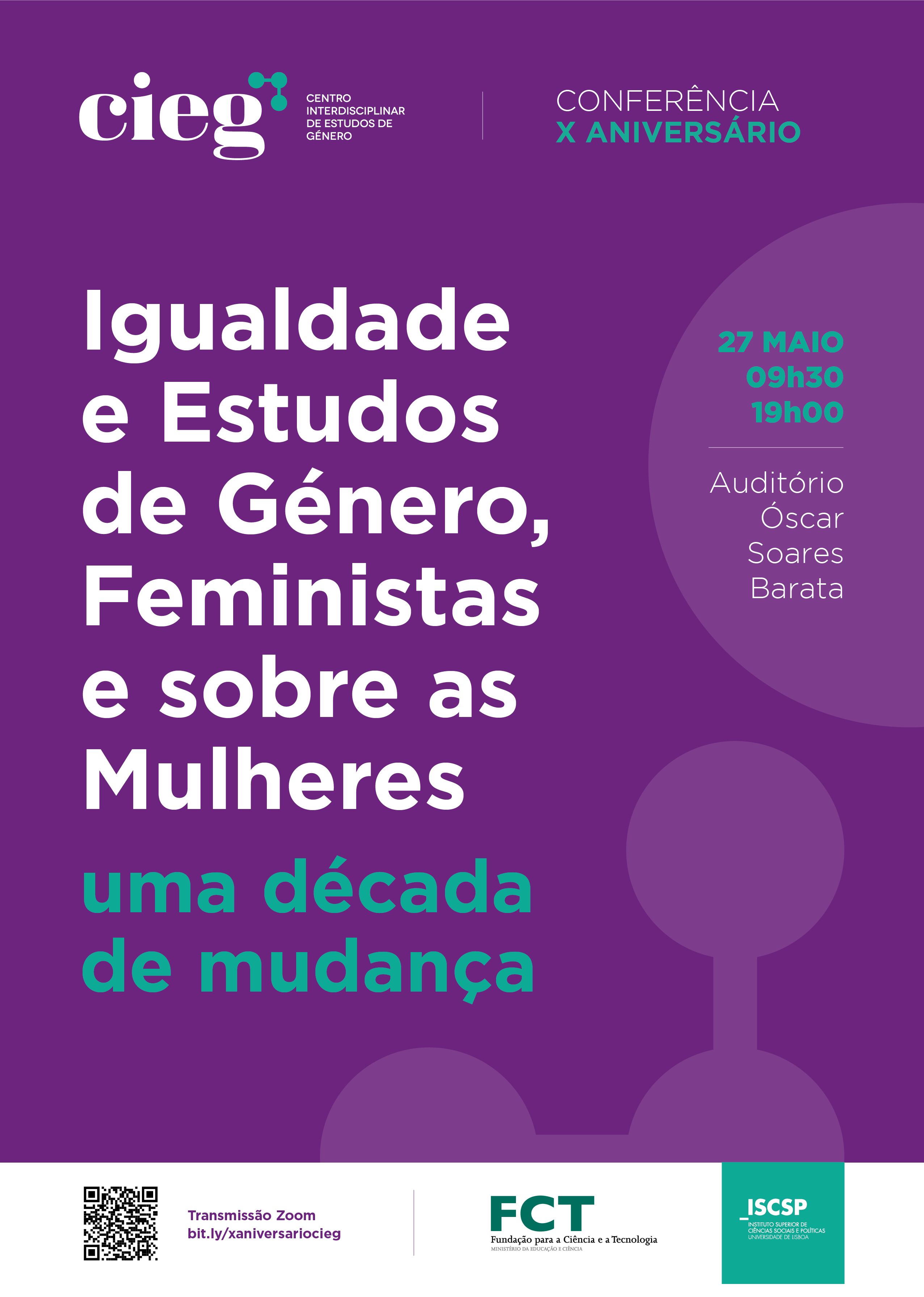 O Centro Interdisciplinar de Estudos de Género do ISCSP-ULisboa assinala o 10.º aniversário com a conferência "Igualdade e Estudos de Género, Feministas e sobre as Mulheres - uma década de mudança", no dia 27 de maio de 2022. A iniciativa decorre no Auditório Óscar Soares Barata, a partir das 9h30 horas.