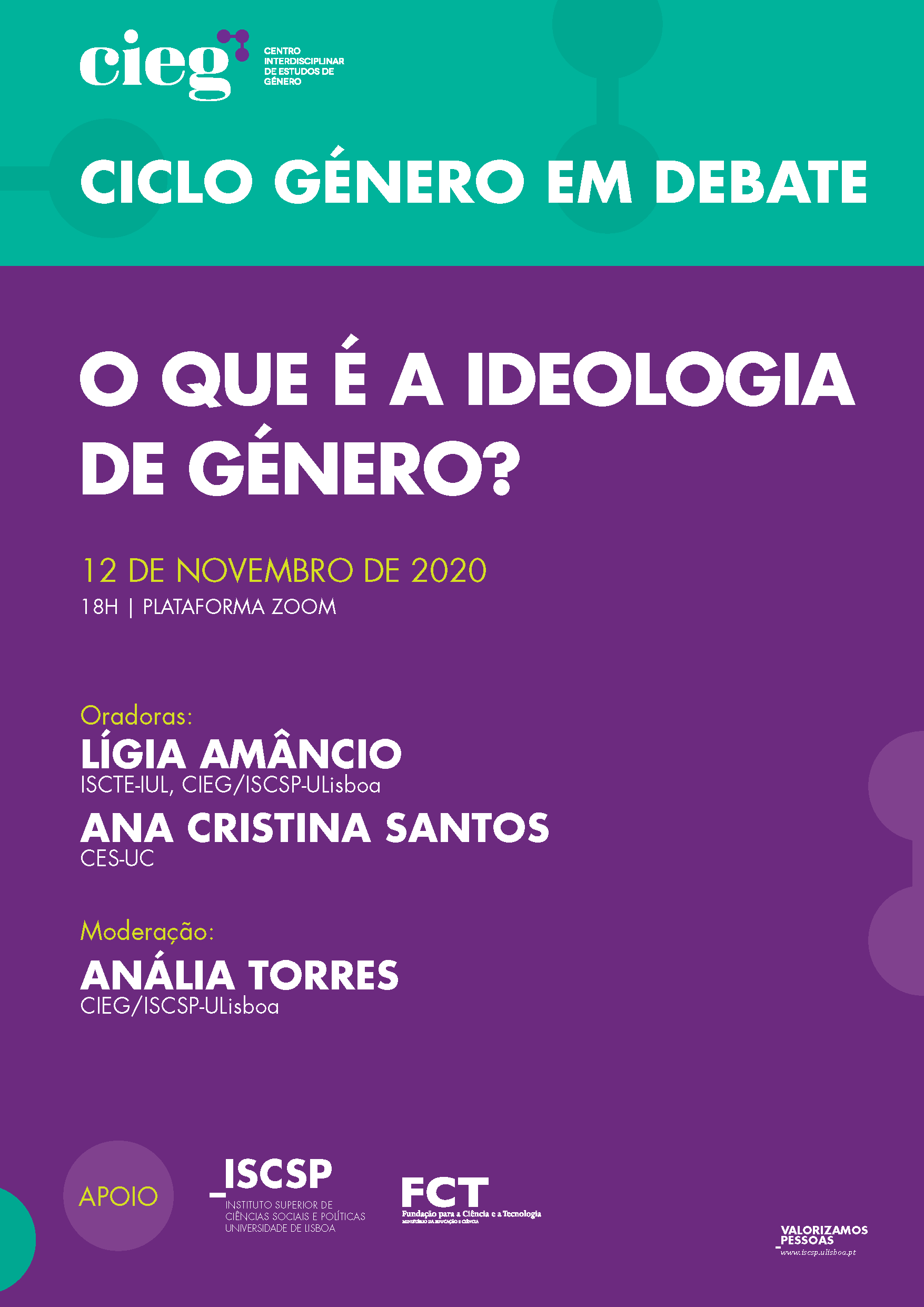 A sessão, moderada por Anália Torres, Coordenadora do Centro Interdisciplinar de Estudos de Género (CIEG) do ISCSP-ULisboa, terá como oradoras Lígia Amâncio, do ISCTE-IUL, e Ana Cristina Santos, do Centro de Estudos Sociais da Universidade de Coimbra (CES-UC).