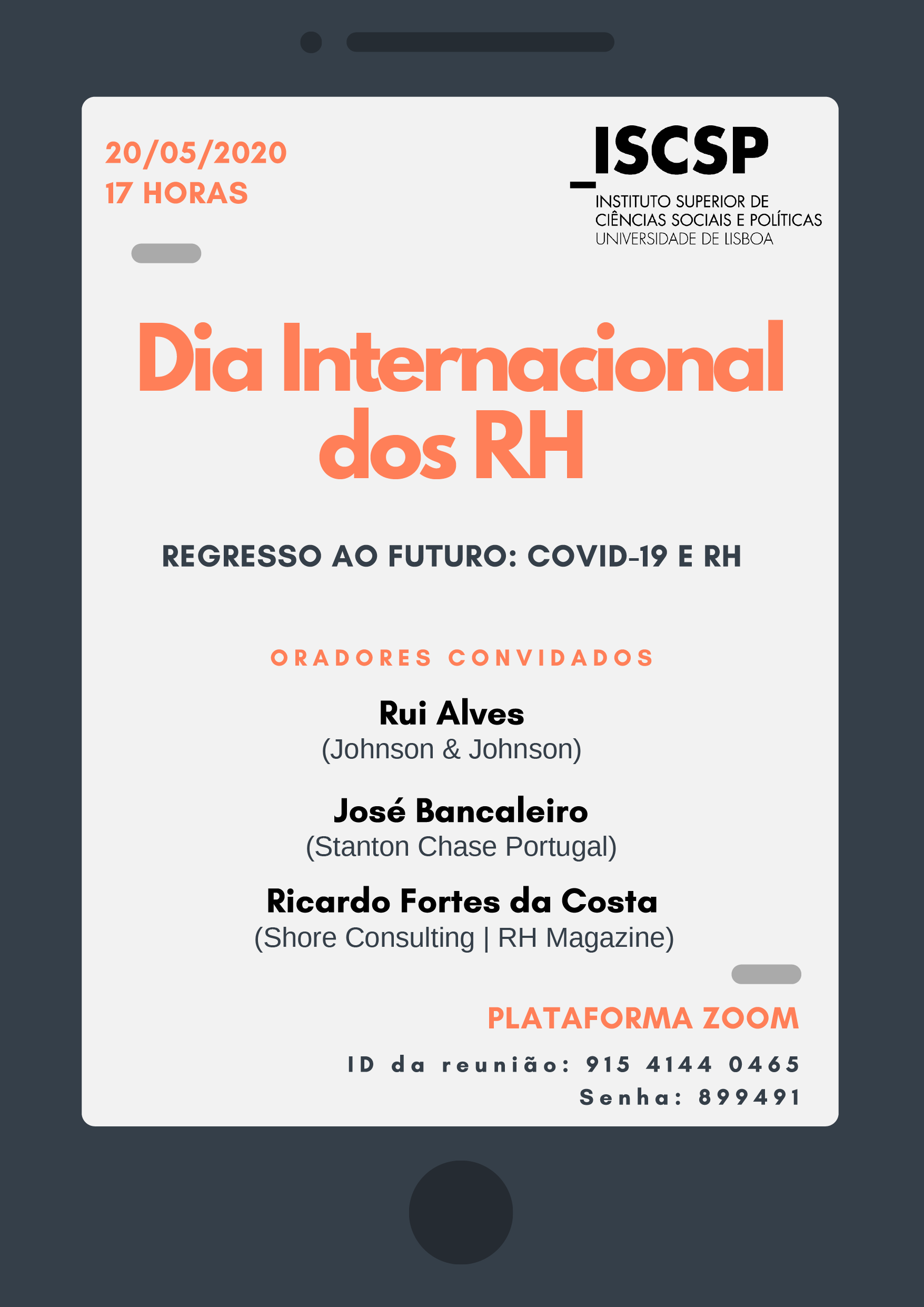 Dia Internacional dos Recursos Humanos - “Regresso ao Futuro: COVID-19 e RH” - Cartaz (PNG) (0.15 MB)⇒ Conheça a nossa licenciatura em Gestão de Recursos Humanos.