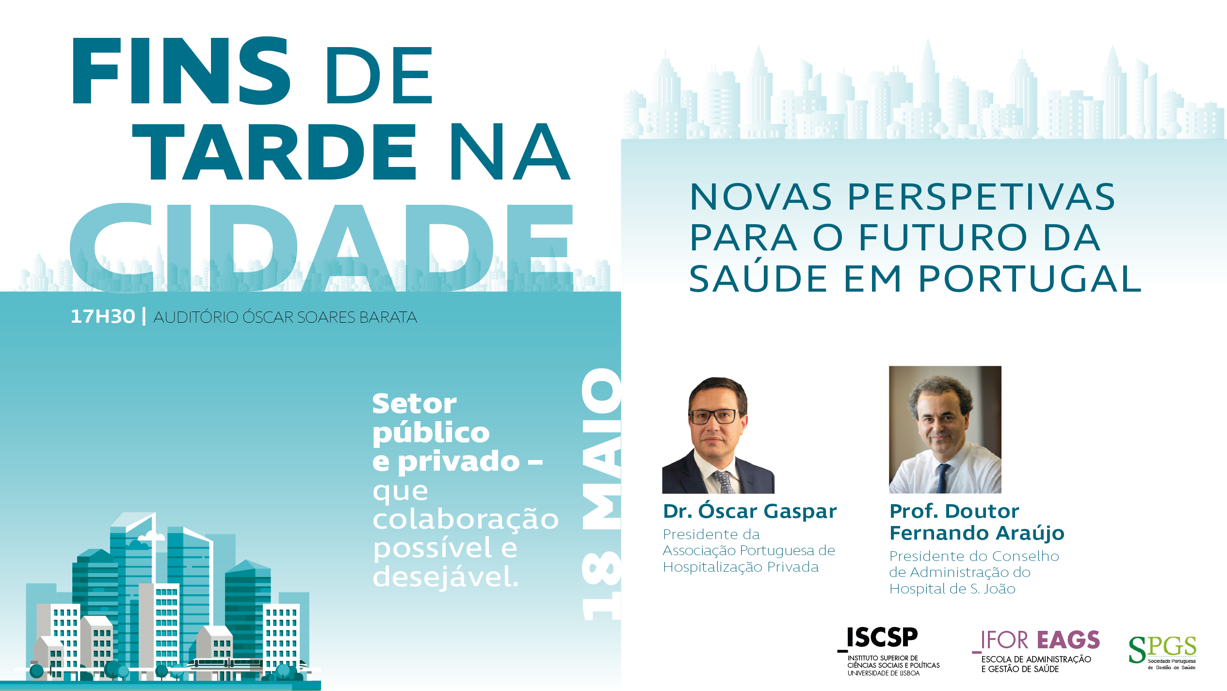 Realiza-se no dia 18 de maio de 2021 a conferência “Setor público e privado – Que colaboração possível e desejável”, com Óscar Gaspar, Presidente da Associação Portuguesa de Hospitalização Privada e Fernando Araújo, Presidente do Conselho de Administração do Hospital de S. João. Agendado para as 17h30 horas, no auditório Óscar Soares Barata do ISCSP-ULisboa, o evento será transmitido por videoconferência.
