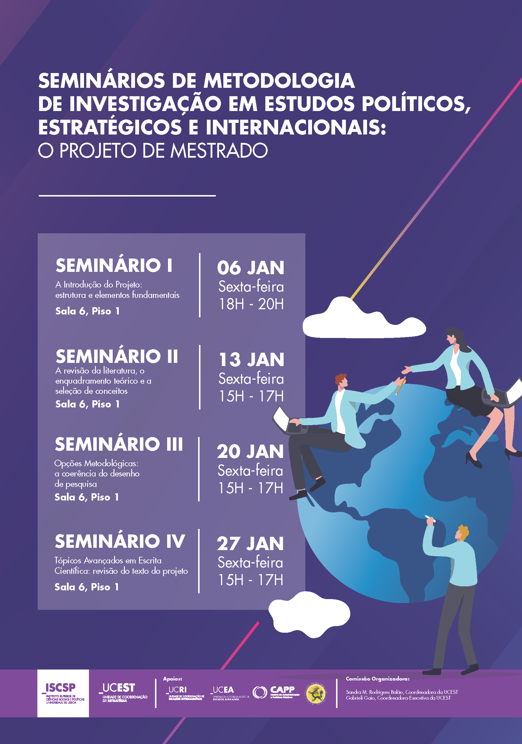 Seminários de Metodologia de Investigação em Estudos Políticos, Estratégicos e Internacionais: o Projeto de Mestrado - Cartaz (PNG) (0.25 MB)
