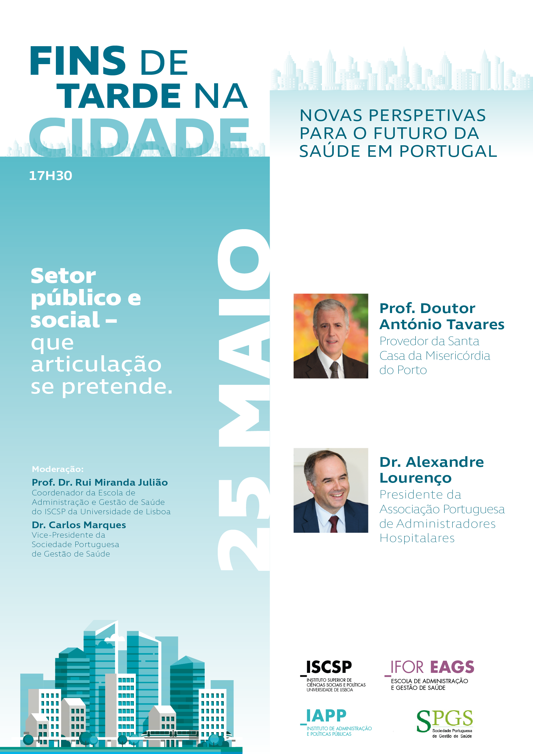 António Tavares, Provedor da Santa Casa da Misericórdia do Porto e Alexandre Lourenço, Presidente da Associação Portuguesa de Administradores Hospitalares são os oradores convidados. A moderação fica a cargo dos elementos da comissão organizadora, Rui Miranda Julião, professor e coordenador da Escola de Administração e Gestão de Saúde do ISCSP-ULisboa e Carlos Marques, vice-presidente da Sociedade Portuguesa de Gestão de Saúde.