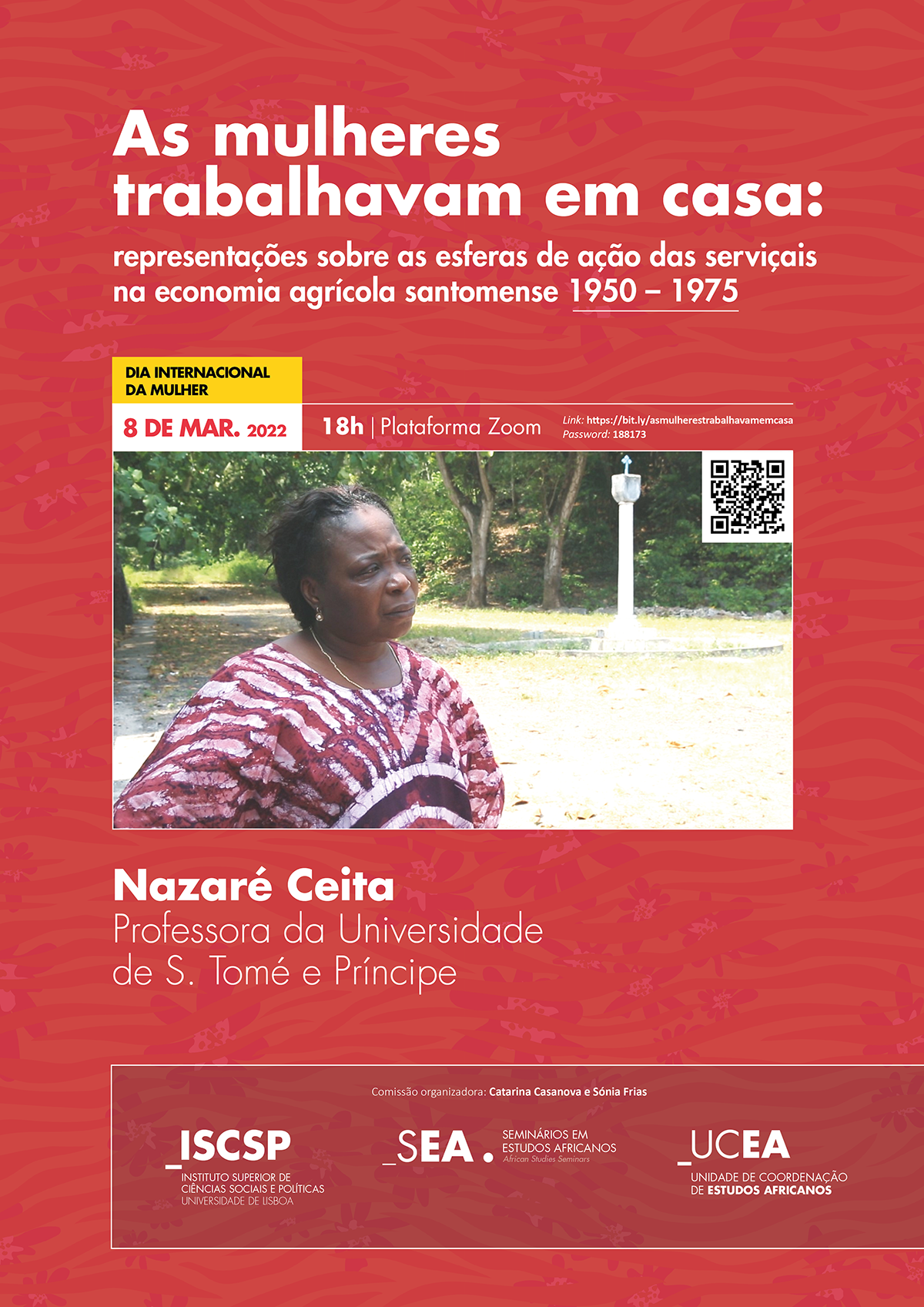 “As mulheres trabalhavam em casa: representações sobre as esferas de ação das serviçais na economia agrícola santomense (1950 – 1975)” é o tema da conferência que se realiza no dia 8 de março de 2022, Dia Internacional da Mulher. A iniciativa decorre às 18 horas, com transmissão online e é organizada pela Unidade de Coordenação de Estudos Africano.